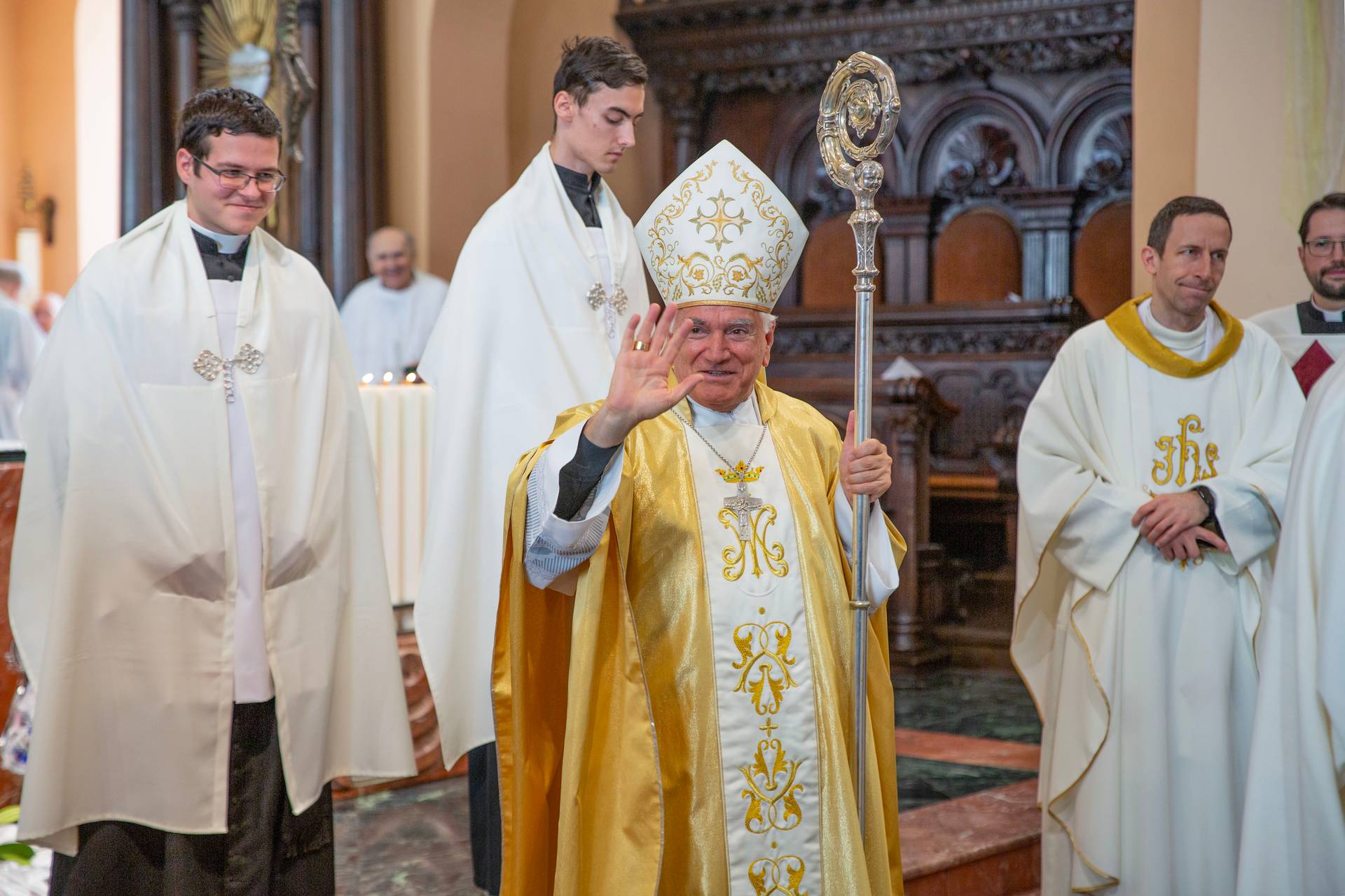 Medzi zúčastnenými biskupmi Slovenska na slávnosti nechýbal Mons. Tomáš Galis, ktorému sú tunajší veriaci vďační za viacročnú službu pomocného biskupa aj rektora obnoveného diecézneho seminára. Diecézny biskup Mons.Marián Chovanec zhromaždeniu prečítal pozdravný list biskupa západného dištriktu Evanjelickej cirkvi augsburského vyznania na Slovensku Jána Hroboňa.