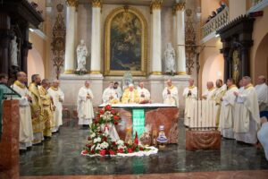 Slávnostnou sv. omšou v Katedrále sv. Františka Xaverského v sobotu 14. marca 2026 spoločenstvo Banskobystrickej diecézy ďakovalo za 250 rokov života a Božieho požehnania. Hlavný celebrant, apoštolský nuncius na SlovenskuMons. Nicola Girasoli, jubilujúcej diecéze priniesol blahoprajný list Svätého Otca Leva XIV. Počas slávnosti v katedrále mal apoštolský nuncius na sebe práve ten ornát, v ktorom 12. septembra 2003 pápež Ján Pavol II. celebroval sv. omšu na banskobystrickom hlavnom námestí.